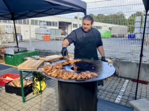 Das wechselhafte Wetter spielte keine Rolle – die Stimmung blieb strahlend. Rund um die Feuertonnen wurde gemeinsam gelacht, gegessen und gefeiert. Bottroper Bier, Flammlachs, Smashed Burger, Grillgemüse, Pommes, Currywurst, Slush-Eis-Cocktails, Churros und Frozen Yoghurt: eine kulinarische Reise, die so vielfältig war wie unsere Gäste und genauso kreativ wie unsere Fenster- und Fassadenlösungen. Müller Fenster und Fassaden hat das Jubiläum und die Eröffnung des zweiten Werks dazu genutzt, ein partnerschaftliches Netzwerktreffen zu veranstalten. Denn nur gemeinsam können wir wachsen und auf Augenhöhe zusammenarbeiten.
